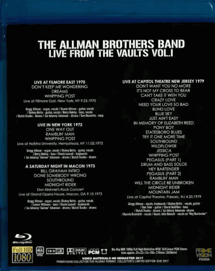 ALLMAN BROTHERS BAND DVD - LIVE FROM THE VAULTS VOL.I BLU-RAY