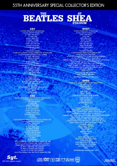 The 1965 Beatles' historic concert "Share Stadium" 55th Anniversary Special Collector's Edition is now available from the SGT label! The first full-length real stereo complete version with the latest remastered in 2020 and each version with different edits so far are collectively included. The latest collector's edition that allows you to compare and verify the differences between sound and video!