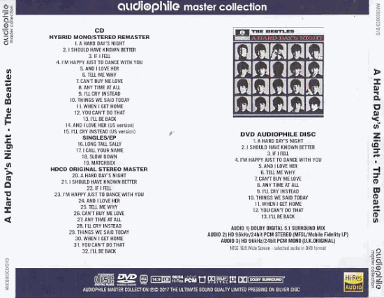 BEATLES (CD/DVD) MASTER RECORDING (5.1 SURROUND) A HARD DAYS NIGHT (AUDIOPHILE)