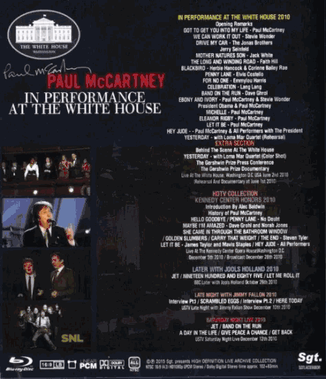 Documentary Live At The White House, Washington D.C. USA June 2nd 2010 (Rehearsal And Documentary at June 1st 2010) President Obama presented America’s highest award for popular music : the Library of Congress Gershwin Prize for Popular Song to Sir Paul McCartney in the East Room of the White House. HDTV COLLECTION KENNEDY CENTER HONORS 2010 Introduction By Alec Baldwin History of Paul McCartney