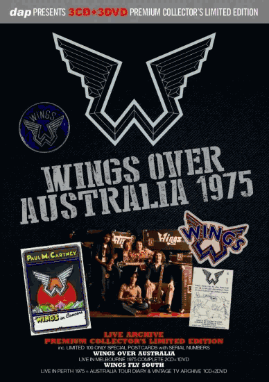 The Premium Collector's Limited Edition includes Wings Over Australia (2CD+1DVD) and Wings Fly South ( 1CD + 2DVD) in an original jacket, DVD, and tall case, and in addition to two types of regular original CD jackets (thick size), a special postcard with a limited serial number is also included. A permanent preservation version completely limited edition title with a numbering that proves a completely limited edition of 200 sets and an original jacket only for this set!