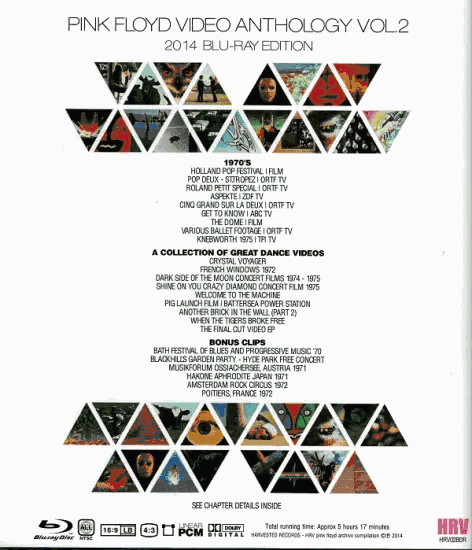 VOL.2 = 1970-1983 1970'S Holland Pop Festival | Film Pop Deux - St.Tropez | ORTF TV Roland Petit Special | ORTF TV Aspekte | ZDF TV Cinq Grand Sur La Deux | ORTF TV Get To Know | ABC TV The Dome | Film Various Ballet Footage | ORTF TV Knebworth 1975 | TF1 TV A COLLECTION OF GREAT DANCE VIDEOS Crystal Voyager French Windows 1972 Dark Side Of The Moon Concert Films 1974 ? 1975 Shine On You Crazy Diamond Concert Film 1975 Welcome To The Machine Pig Launch Film | Battersea Power Station Another Brick In The Wall (Part 2) When The Tigers Broke Free The Final Cut Video EP BONUS CLIPS Bath Festival of Blues and Progressive Music '70 Blackhill's Garden Party - Hyde Park Free Concert Musikforum Ossiachersee, Austria 1971 Hakone Aphrodite Japan 1971 Amsterdam Rock Circus 1972 Poitiers, France 1972 Total running time: Approx 5 hours 17 minutes