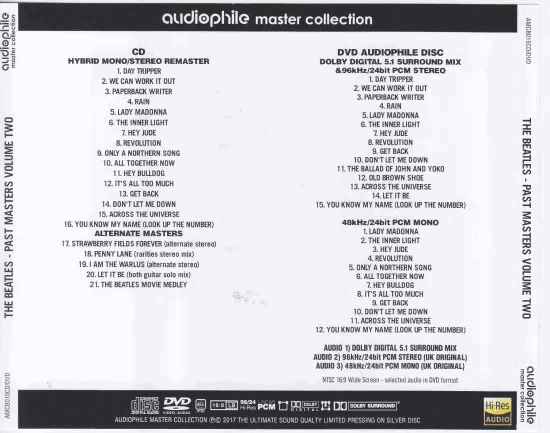 The final title of The Audio File Master Collection is now available, bringing The Beatles' original albums to a new level as the ultimate sound collection with hybrid MONO/STEREO remastered CDs and 5.1 surround and ultra-high quality 96kHz/24bit high-resolution audio DVDs!