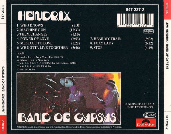 Written-By – B.Miles* (tracks: 3, 6, 9), J.Hendrix* (tracks: 1, 2, 4, 5, 7, 8)