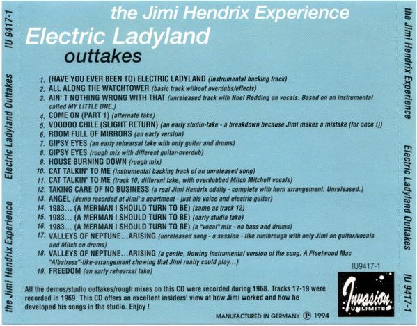 The Jimi Hendrix Experience Cd – Electric Ladyland Outtakes