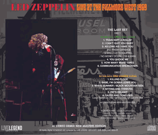 Capturing the raw, adventurous spirit of early Led Zeppelin, these performances are filled with thrilling improvisations and fearless energy. A truly historic live document, this definitive best-collection edition brings together the essence of Zeppelin’s 1969 Fillmore West appearances in unparalleled quality.