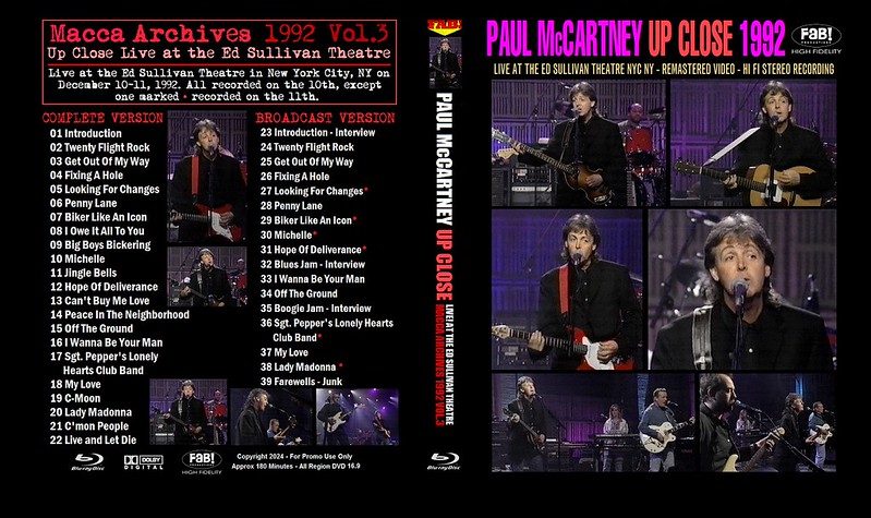 PAUL McCARTNEY 1992 UP CLOSE SPECIAL COMPLETE REMASTER BLU-RAY