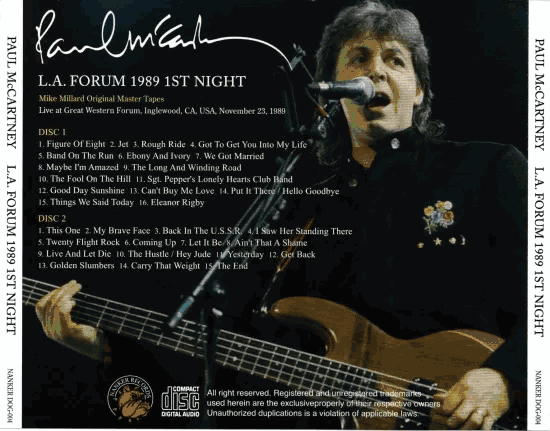 PAUL McCARTNEY (2/CD) L.A. FORUM 1989 1ST NIGHT