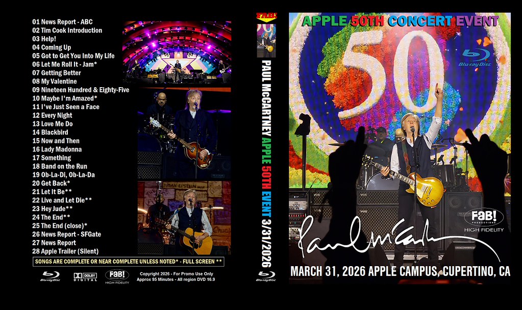PAUL McCARTNEY APPLE 50TH CONCERT EVENT 3/31/2026 BLU-RAY