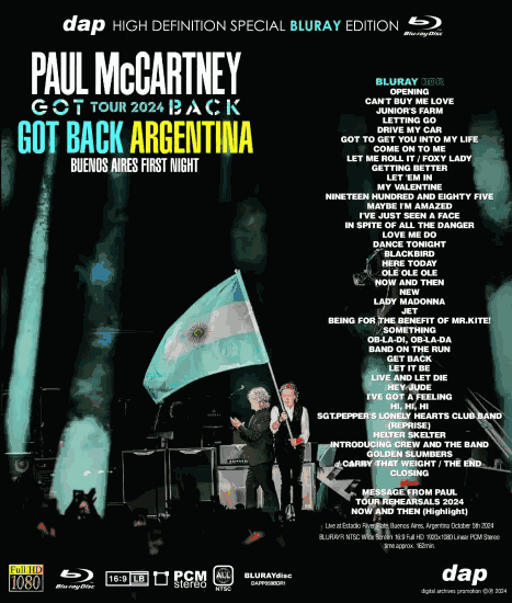 PAUL McCARTNEY DVD - GOT BACK ARGENTINA 2024 : BUENOS AIRES FIRST NIGHT BLU-RAY