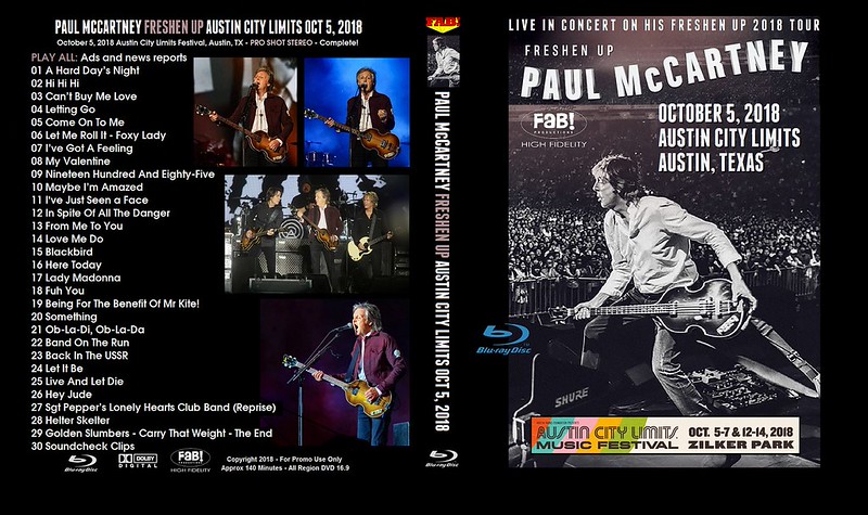 PAUL McCARTNEY FRESHEN UP AUSTIN CITY LIMITS 10/5/2018 BLU-RAY