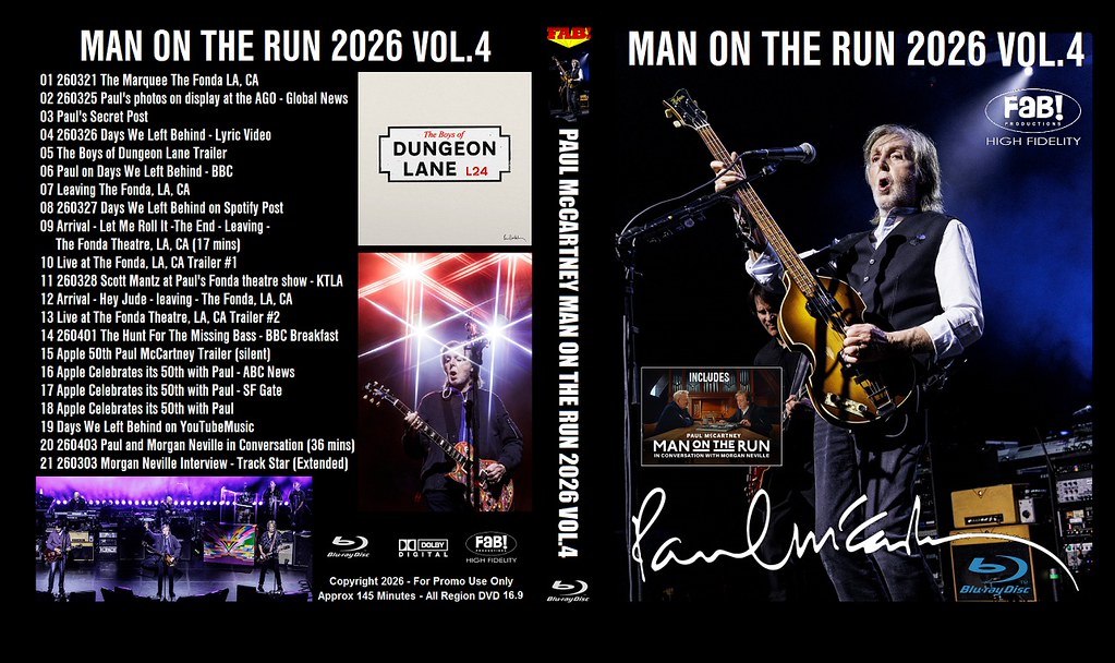PAUL McCARTNEY: MAN ON THE RUN 2026 VOL.4 BLU-RAY March thru April 2026 reports on Man on the Run interviews with director Morgan Neville, Paul at The Fonda
